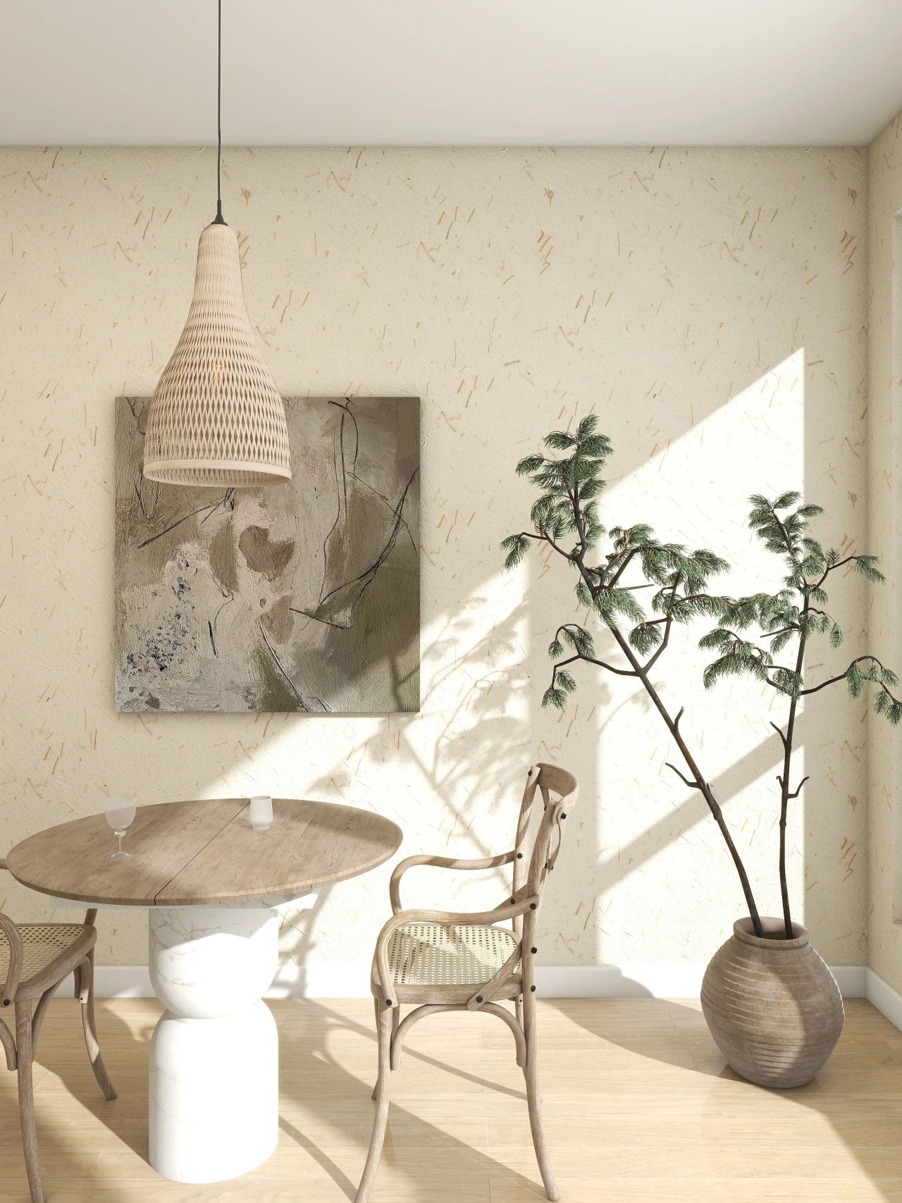 立镁家生态艺术稻草漆自带的原生之美与空间的极简设计语言完美融合,于自然质朴中窥见生活本真。