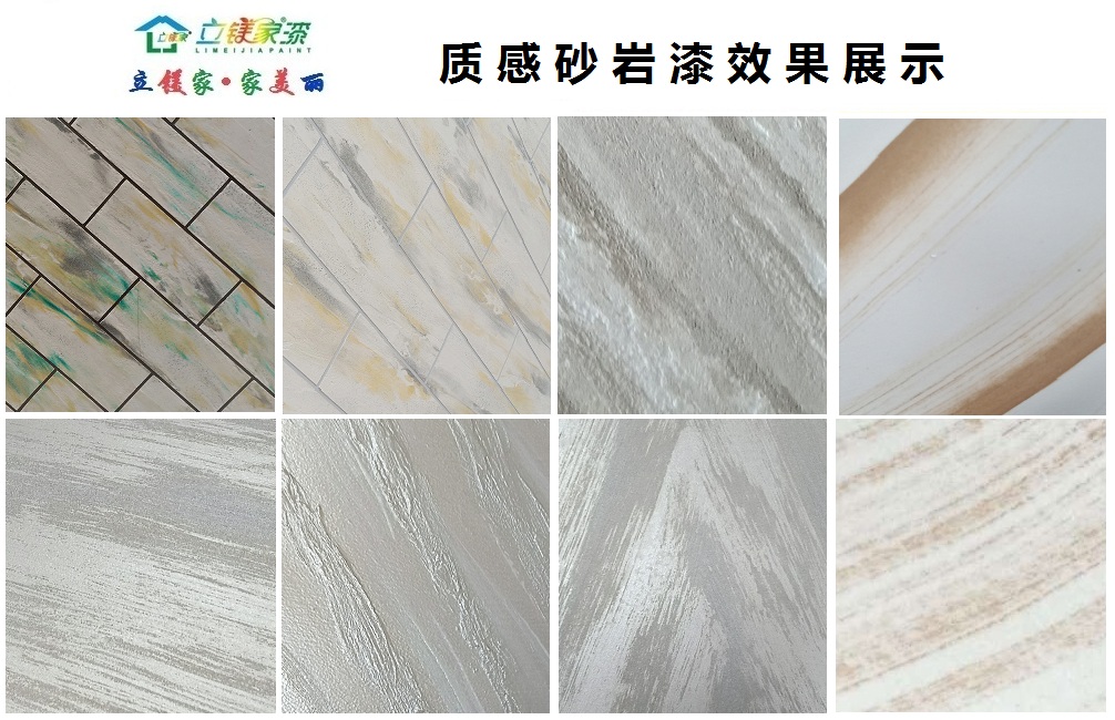。砂岩漆可以配合建筑物不同的造型需求,在平面,圆柱,线板或雕刻板上,创造出各种砂璧状的质感,在满足设计上的美观需求的同时还满足亲近自然的欲望的一种质感与立体感相结合的仿石涂料。